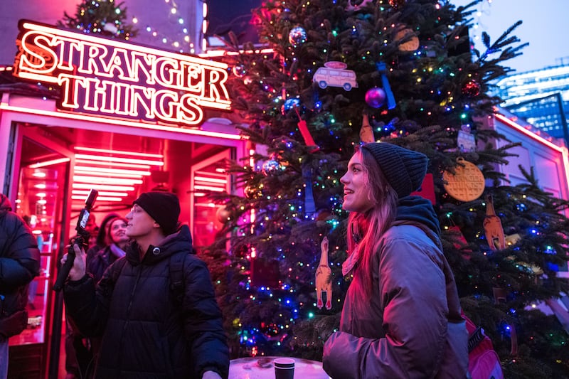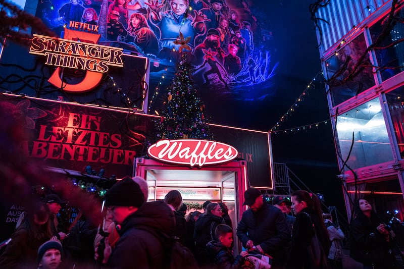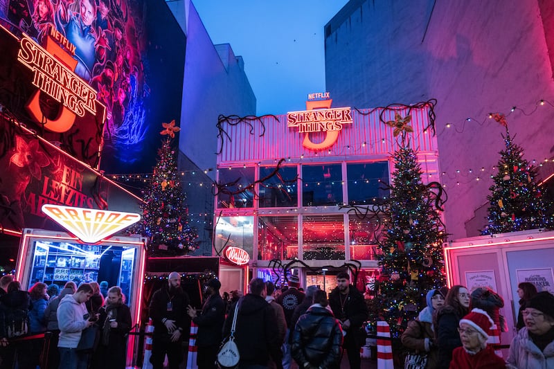 'Stranger Things'-Themed Christmas Market In Berlin BERLIN, GERMANY - DECEMBER 10: Visitors take photos at the "Stranger Things"-themed "Hawkins Christmas Market" on December 10, 2025 in Berlin, Germany. The market features props and situations from the popular "Stranger Things" Netflix television series. Netflix recently launched season five of the series. (Photo by Nadja Wohlleben/Getty Images) (Nadja Wohlleben/Getty Images)