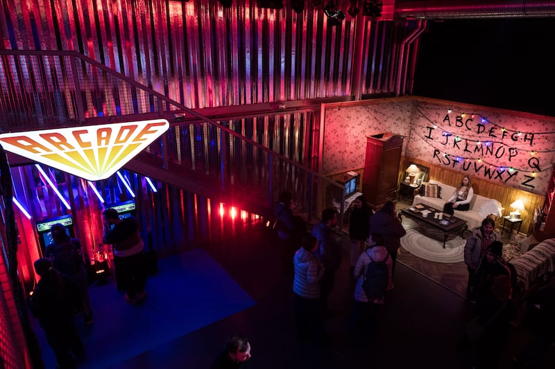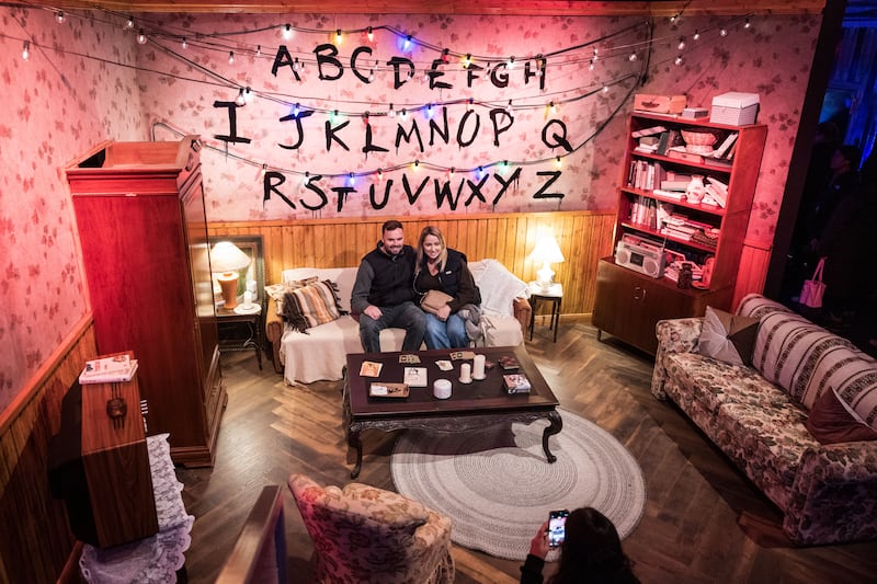 The market features props and situations from the popular “Stranger Things” Netflix television series including the iconic Byers’ living room, the WSQK studio and van, Demogorgons, and more.
