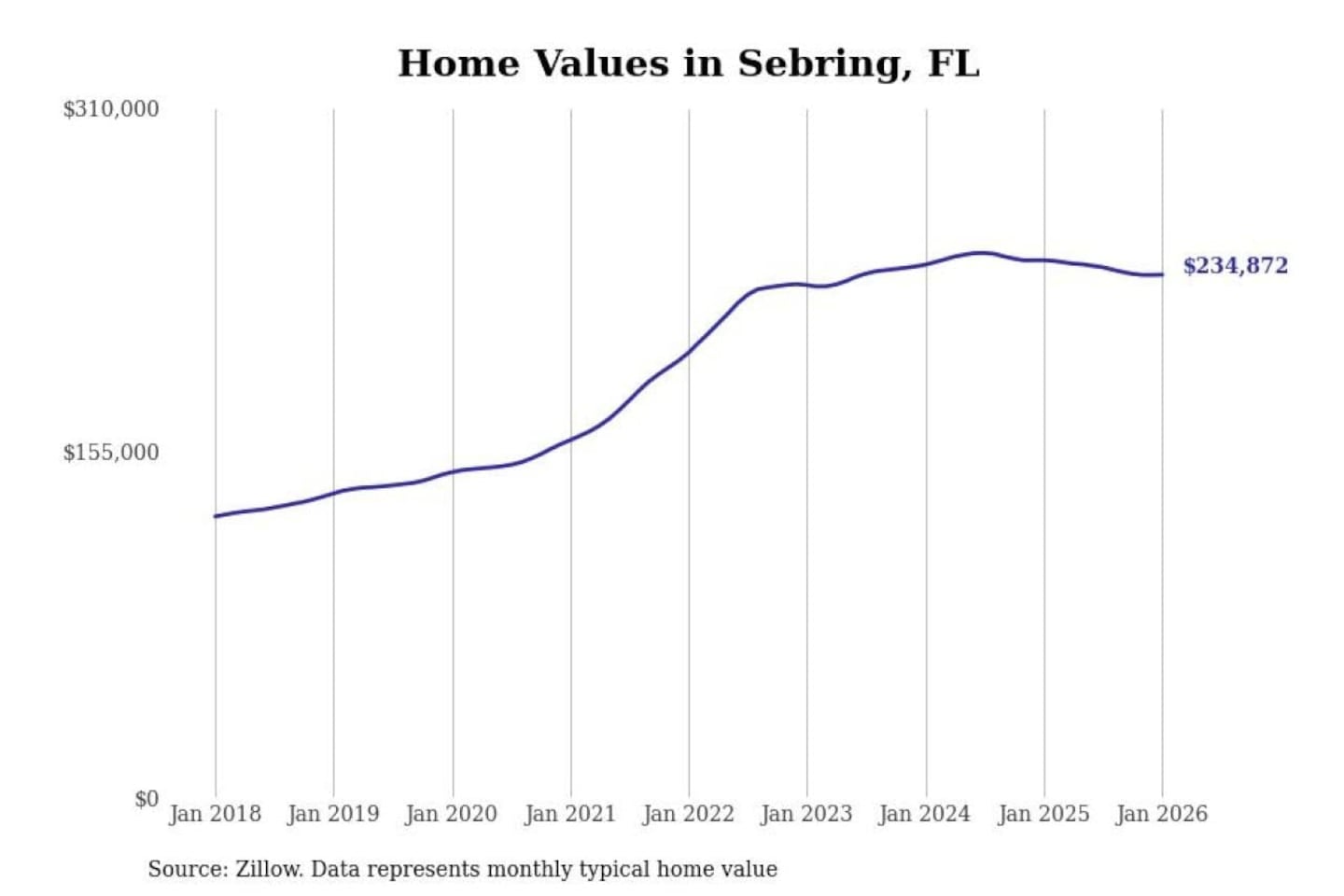 Stacker compiled a list of cities with the most expensive homes in the Sebring-Avon Park, FL metro area using data from Zillow. Charts show the monthly typical home value since January 2018.