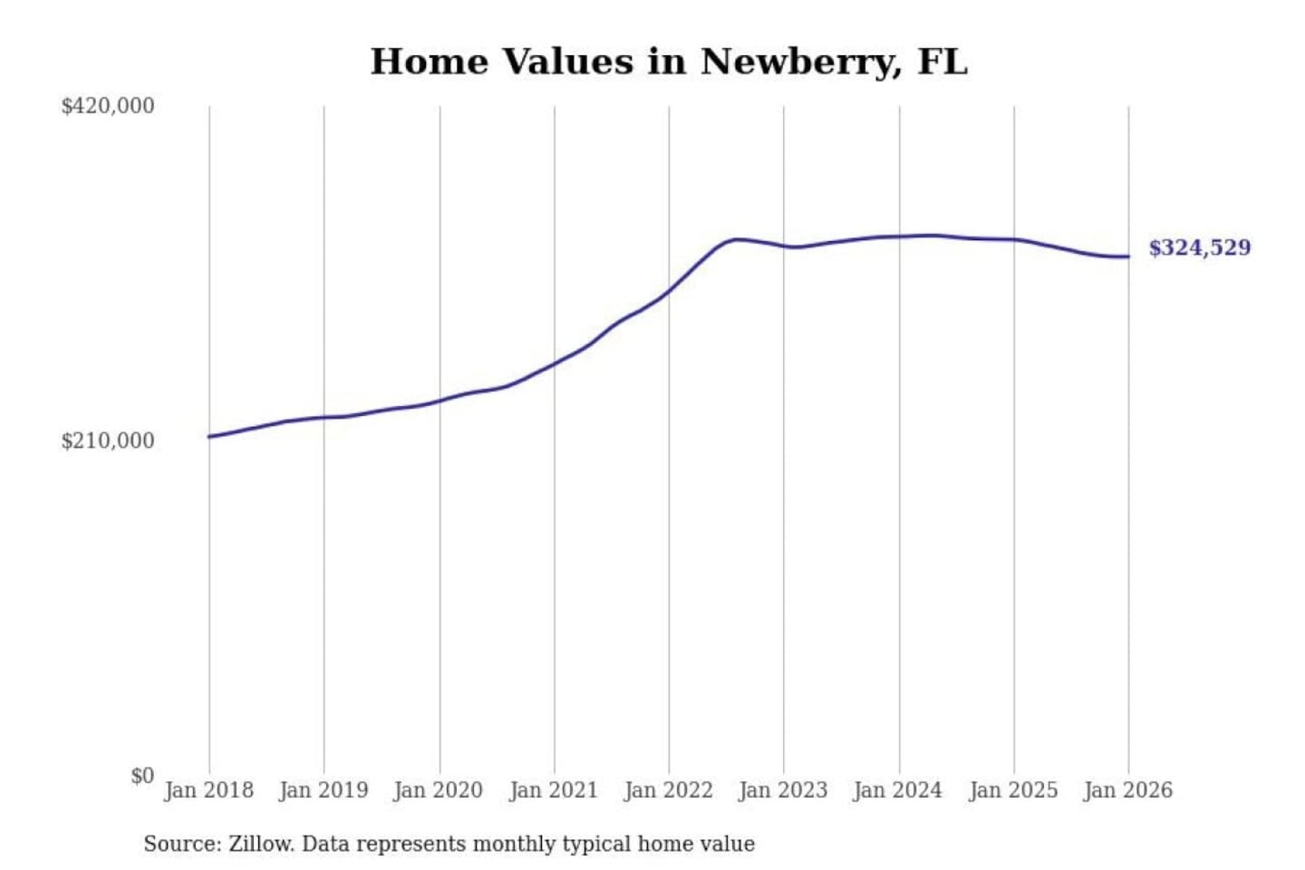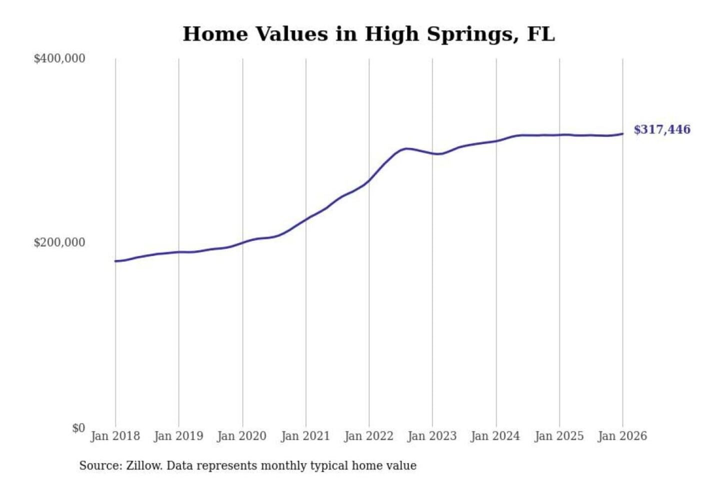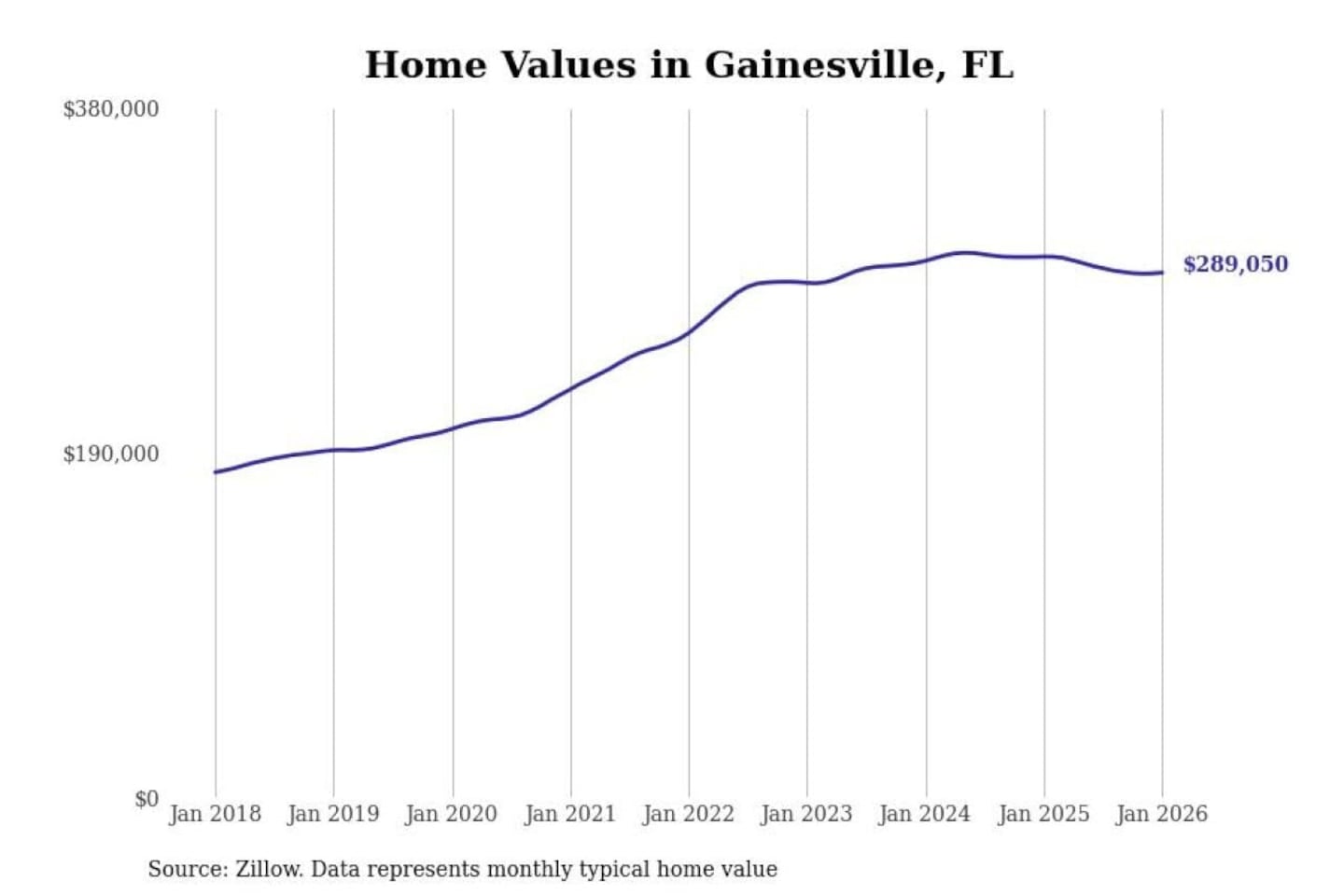 Stacker compiled a list of cities with the most expensive homes in the Gainesville, FL metro area using data from Zillow. Charts show the monthly typical home value since January 2018.