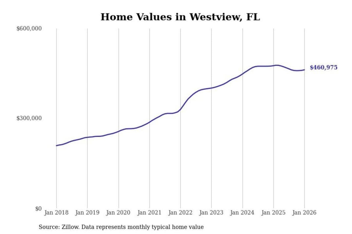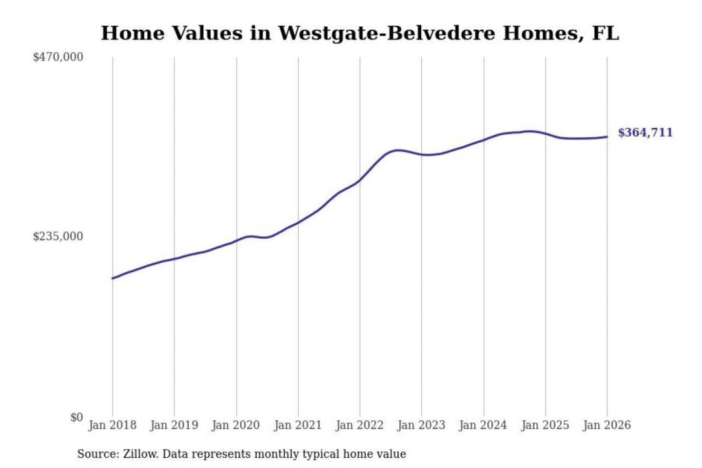 The typical home value in the United States was $358,968 in January, 0.2% higher than the year before.
