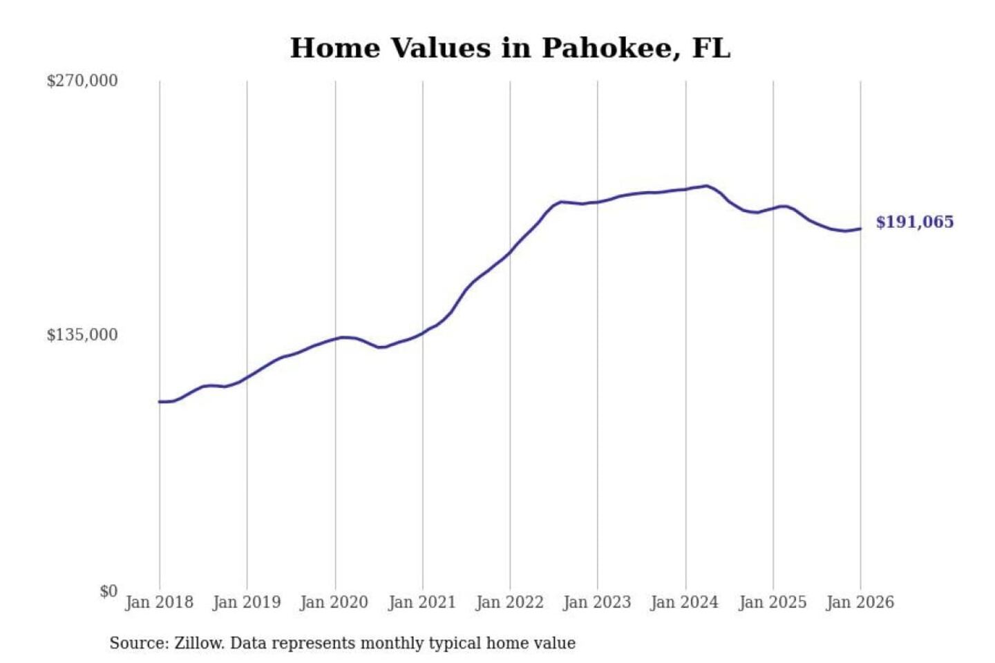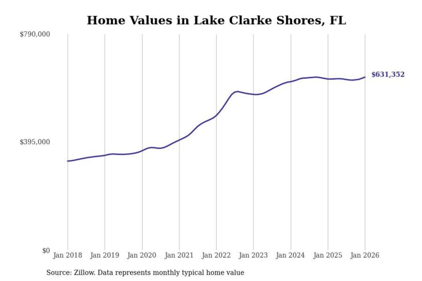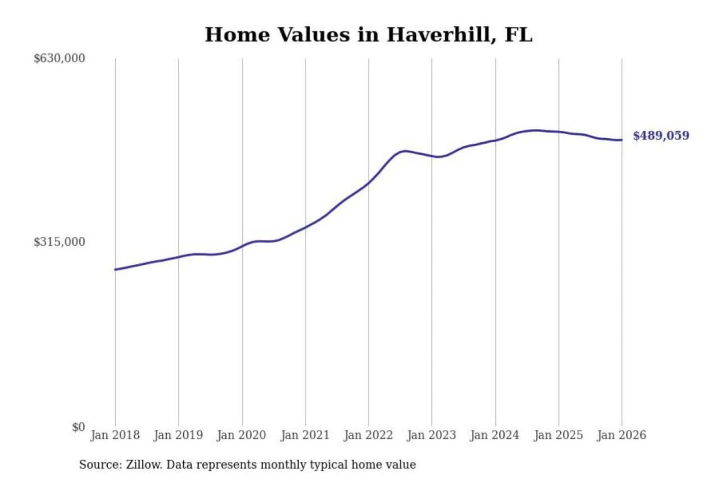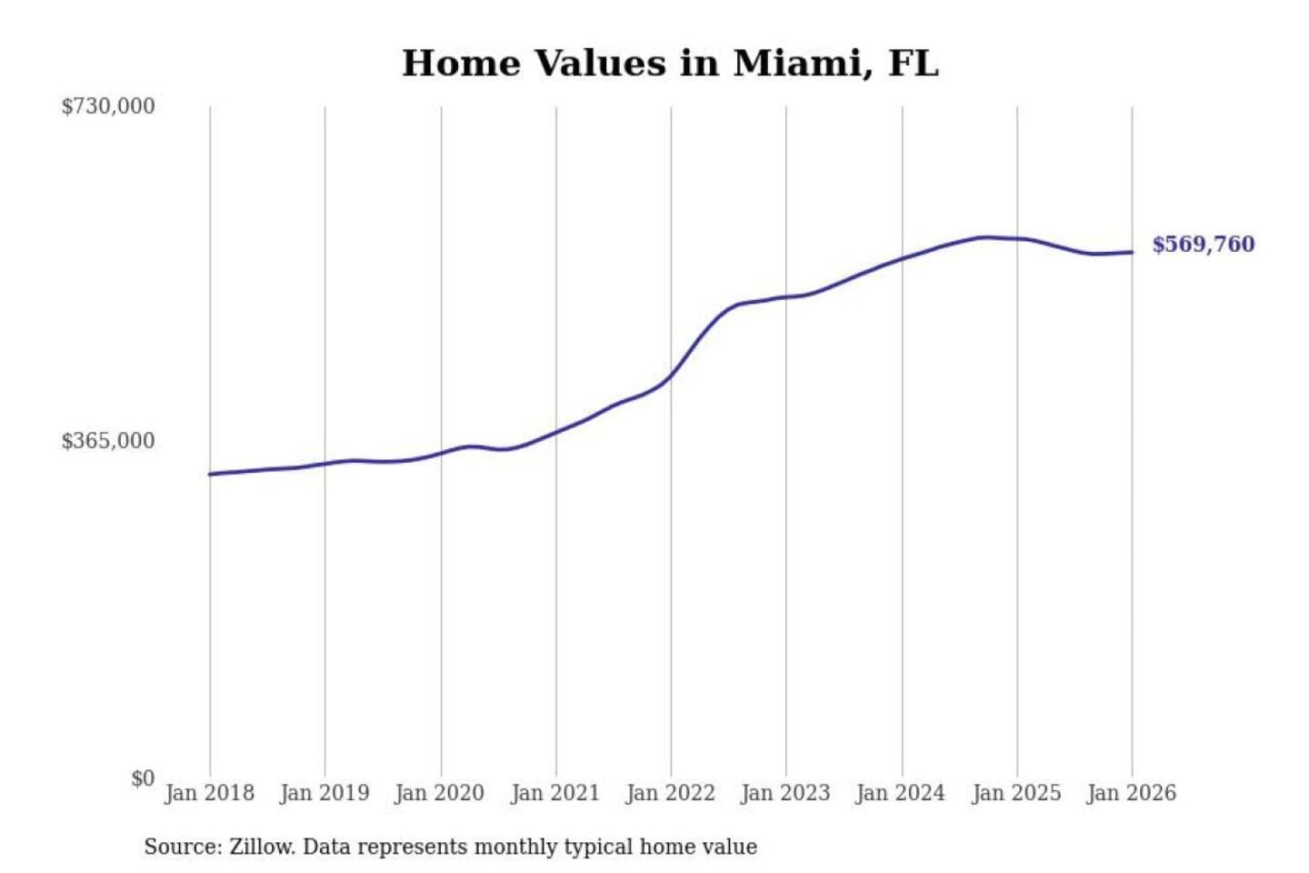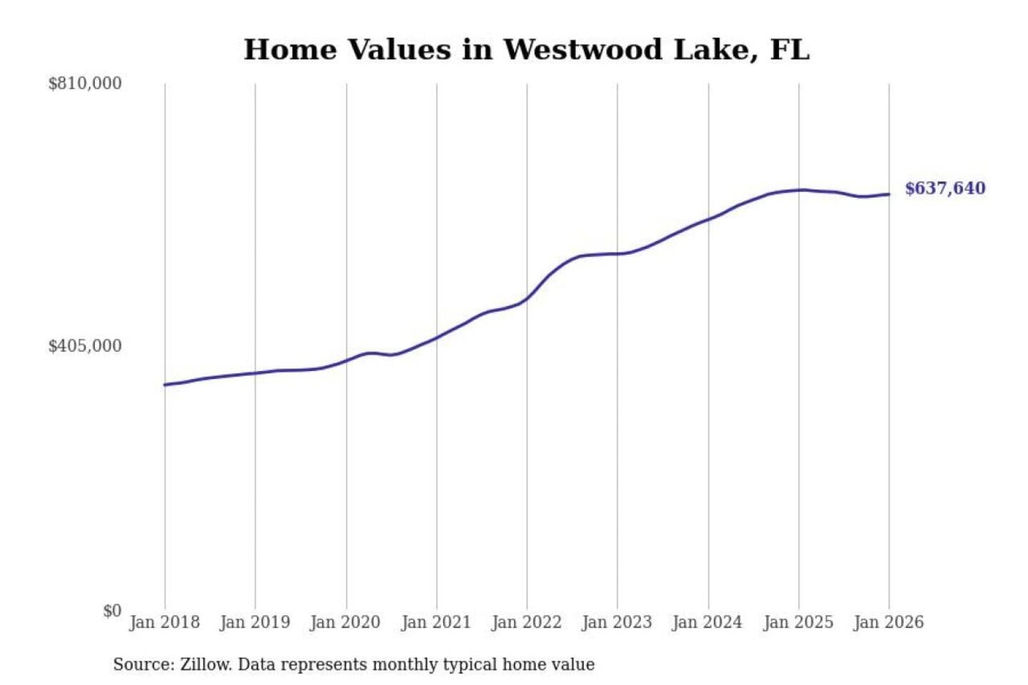 Stacker compiled a list of cities with the most expensive homes in the Miami-Fort Lauderdale-Pompano Beach, FL metro area using data from Zillow. Charts show the monthly typical home value since January 2018.