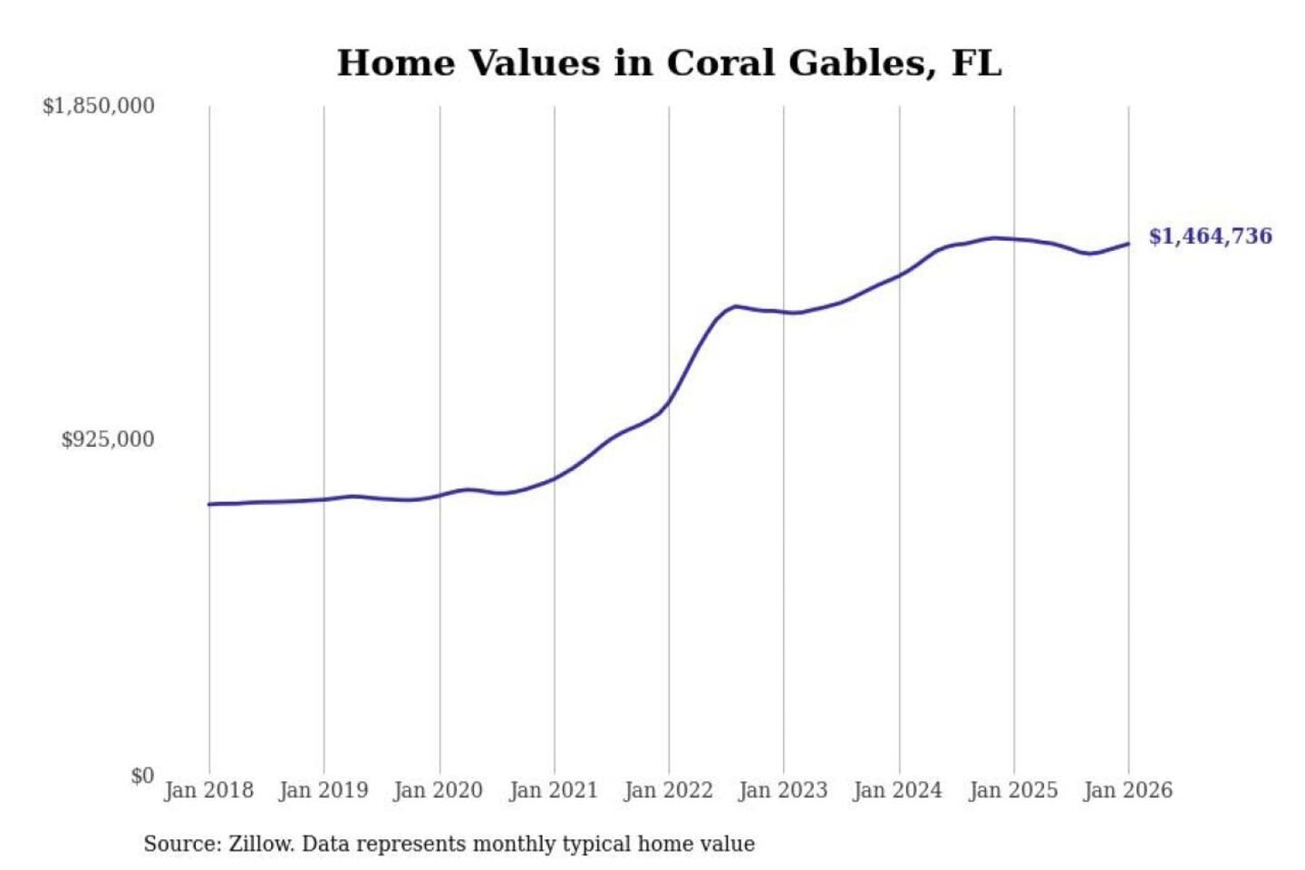 - 5-year price change: +$1,080,610 (+73.3%)
