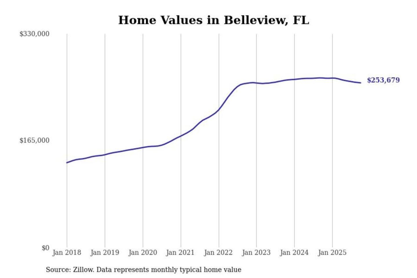 Stacker compiled a list of cities with the most expensive homes in the Ocala metro area using data from Zillow. Charts show the monthly typical home value since January 2018. All 12 cities and towns with data available were included in the list.