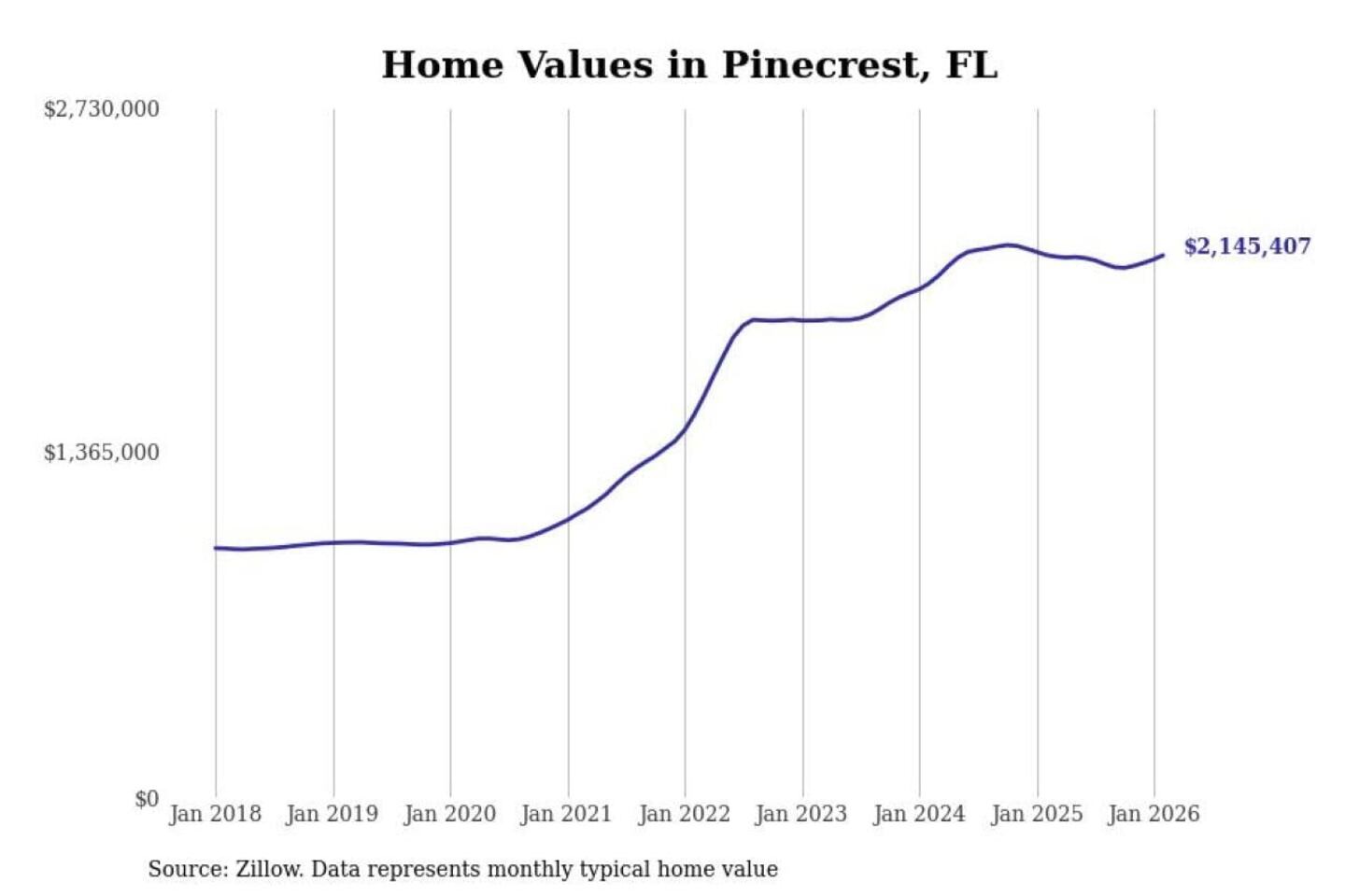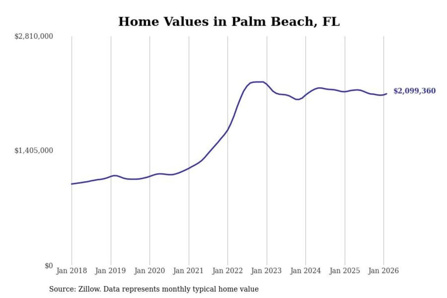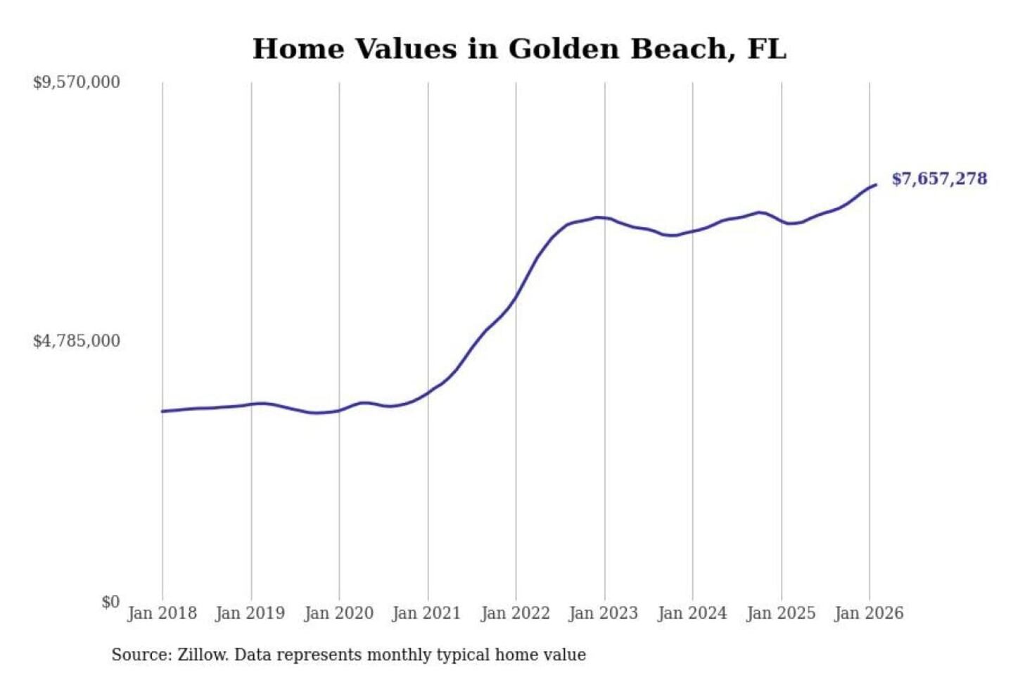Stacker compiled a list of cities with the most expensive homes in Florida using data from Zillow. Cities are ranked by the Zillow Home Values Index for all homes as of February 2026. The charts in this story were created automatically using Matplotlib.