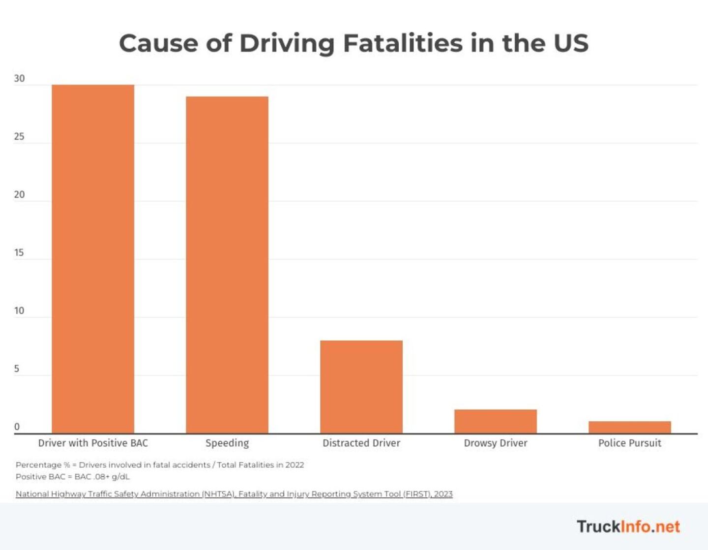 Despite efforts to curb drunk driving, it remains the leading cause of driving fatalities followed closely by speeding.
