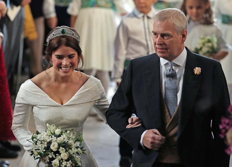 Through the years Princess Eugenie of York and her father Prince Andrew, Duke of York arrive for the wedding of Princess Eugenie of York to Jack Brooksbank at St. George's Chapel on October 12, 2018 in Windsor, England. (Photo by Jeremy Selwyn - WPA Pool/Getty Images) (Jeremy Selwyn/Getty Images)