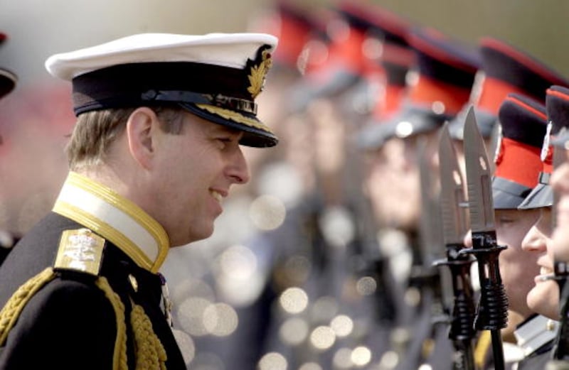 Through the years HRH Prince Andrew, Duke of York, reacts at the presentation of a hydrogen gas station after he arrived at the airport on April 5, 2005 in Munich, Germany. Prince Andrew arrived for a one day visit of Germany. (Photo by Jan Pitman/Getty Images) (Jan Pitman/Getty Images)
